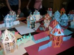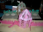 All the sections, including a pop-up building were constructed by using dovetail and mortise and tenon paper joints. Thus paper fatigue is eliminated as well as the tendency for multiple folded units to spring upwards. The book lies perfectly flat.