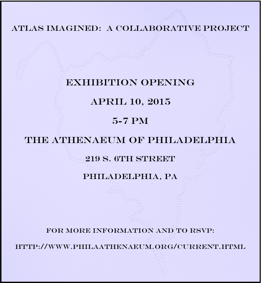 Atlas Imagined: A Collaborative Project Exhibition Opening boxturtle Uncategorized March 25, 2015 for more information and to RSVP: http://www.philaathenaeum.org/current.html Share this: Click to share on X (Opens in new window) X Click to share on Facebook (Opens in new window) Facebook Like Loading... Related Published by boxturtle View all posts by boxturtle Published March 25, 2015