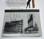 STEEL CONSTRUCTION 1911 features information from the encyclopedia about the construction of one of the great landmarks of New Your City, The Flatiron Building. Original photographs from the encyclopedia are presented along with sections of text describing steel properties and loading characteristics as well as an ink painting of the corner of the building under construction. The painting and book unfolds to 48 inches high. The covers are thin steel with a patina finish simulating rust.