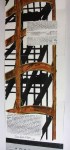 Since this volume was destined for discard and the call for entries invited participants to “do whatever they want with it,” I felt free to do just that, and viewed the book as a big ream of wonderfully thin but surprisingly strong paper. The packed sewing on double cords supplemented with endbands with frequent tie-downs transform the book into a kind of scholarly medieval slinky.